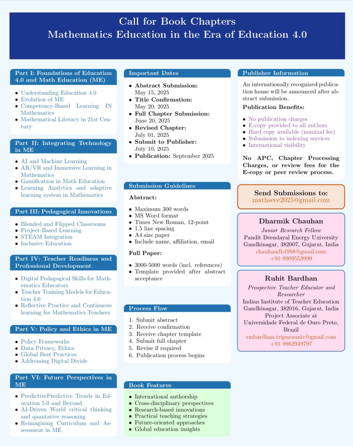 •   14. Dharmik Chauhan, Ruhit Bardhan, Vadym Slyusar et all. Mathematics Education in the Era of Education 4.0. 2026